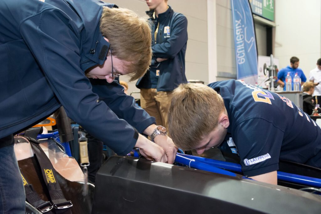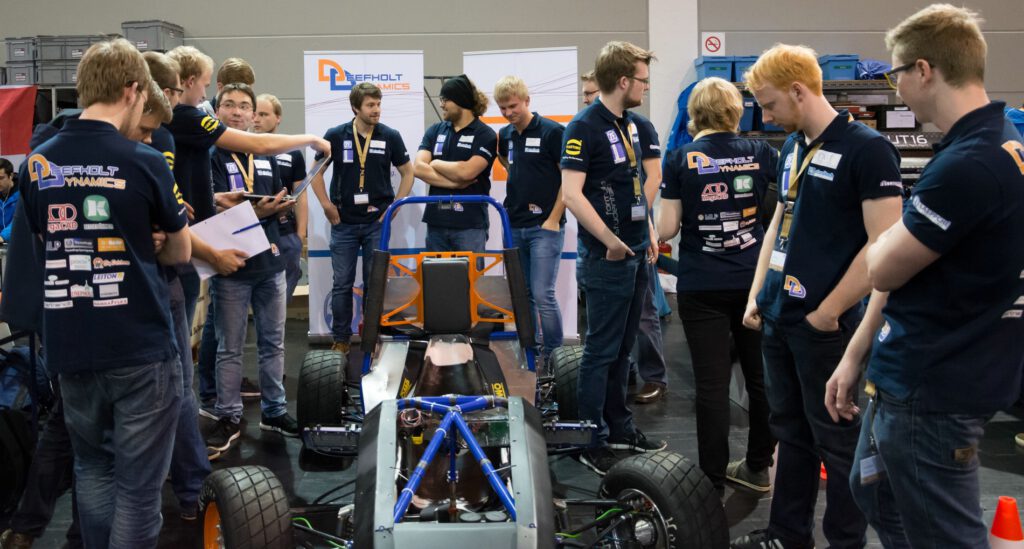 Auf dem Areal des Messegeländes in Friedrichshafen dürfen wir unseren Wagen und unsere ausgearbeiteten Konzepte der geladenen Jury präsentieren um mit Hilfe des Feedbacks uns besser auf die anstehenden statischen und dynamischen Events bei unsere Rennen in Tschechien und den Niederlanden vorzubereiten.